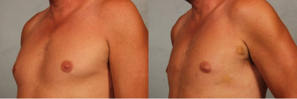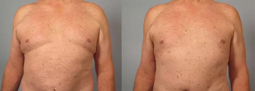 Right: Patient six weeks following radio frequency-assisted liposuction to the male chest.