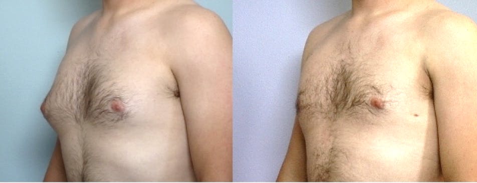 This 22-year-old lost almost 100 pounds over a year. He became frustrated by the lack of response to diet and exercise; his “man boobs” made him very self-conscious. He hoped for an improvement so he not feel awkward when he was not wearing a shirt.