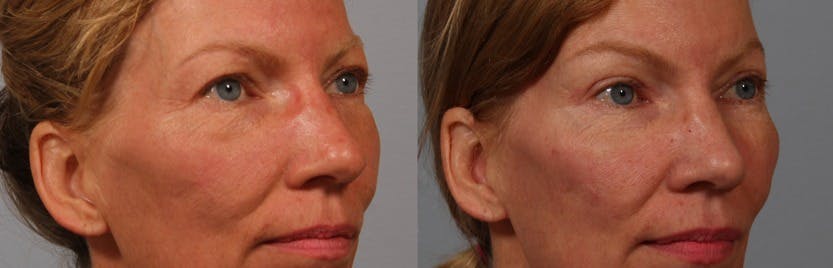 This 28-year-old had a sad and anxious expression since her early teens, due to the position of her eyebrows. Tight attachments to the temporal fascia and low outer brows made this appearance hard to disguise. She had a temporal brow lift with a small incision within the hairline to correct this concern. The subtle and natural-looking result is just what she was looking for in a brow lift.